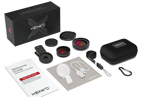 The Xenvo Pro Lens Kit includes a macro lens with a 15x magnification and a focal length of 20mm. The lens comes with a rechargeable LED light that provides additional illumination for your photos. It is compatible with most smartphones and comes with a travel case for protection.
